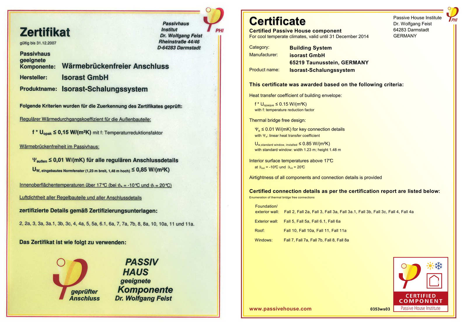 İsorast - İzobeton Sistemine Verilen Pasif Ev Uygunluk Belgesi